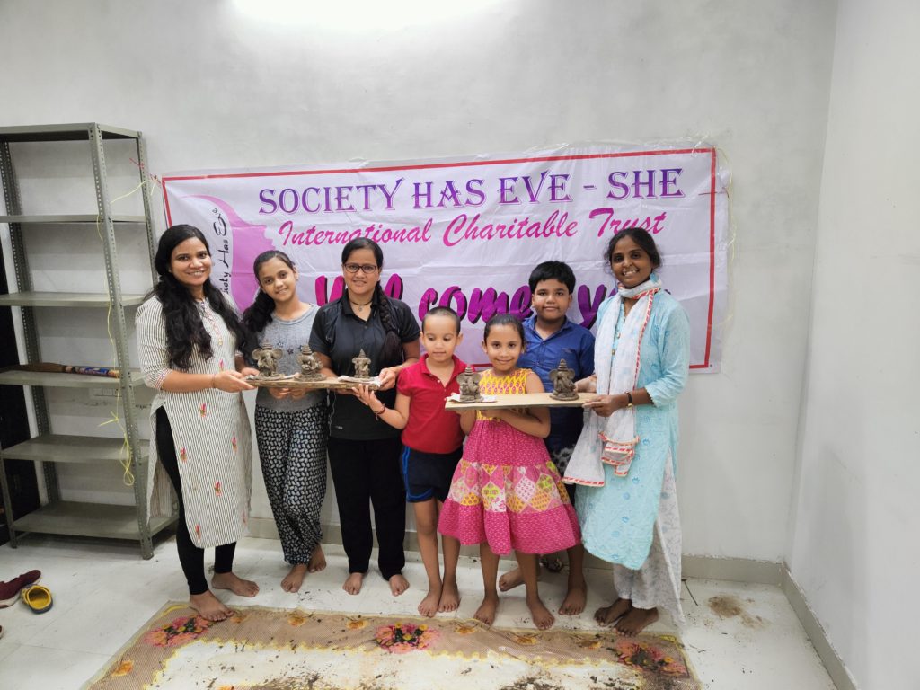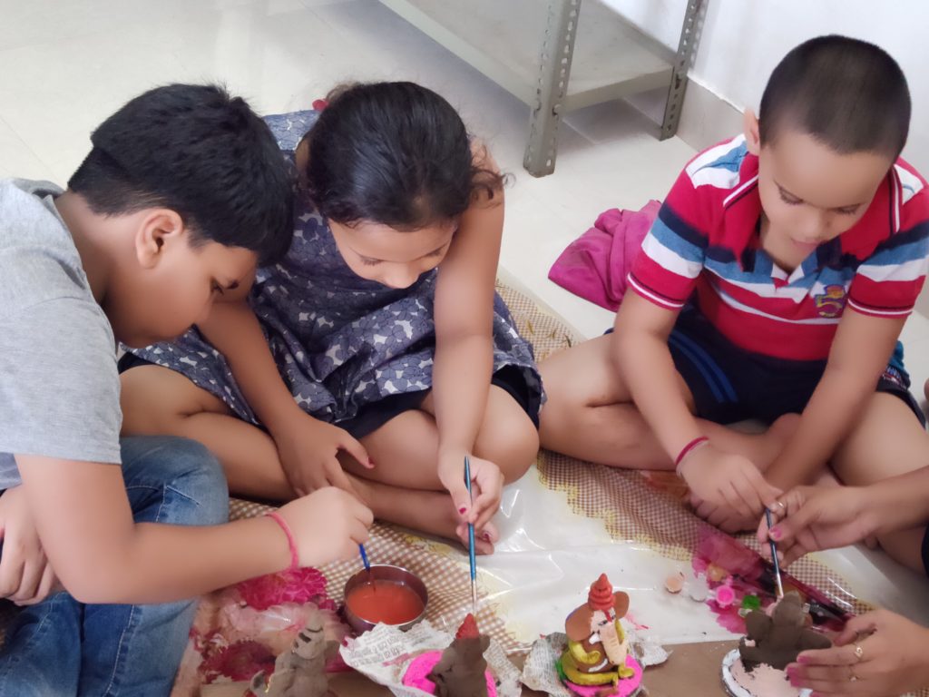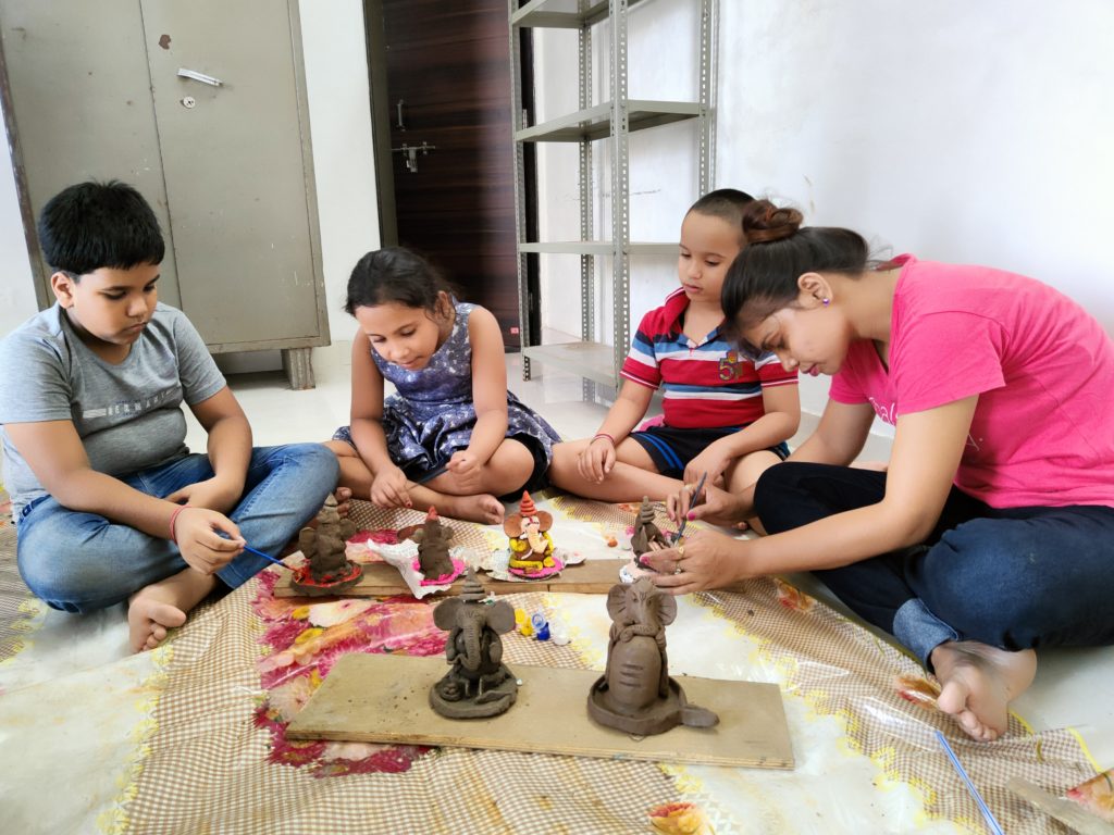 बच्चों व बड़ो को बनाना सिखाया इको फ्रेंडली गणेश